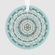 This mandala design features layers of white, turquoise and brown patterns inspired by Celtic weaves and Indian mehndi, such as vines, ribbons, and lotus flowers.