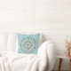 This concentric circle design features layers of white, turquoise and brown patterns inspired by Celtic weaves and Indian mehndi, such as vines, ribbons, and lotus flowers.