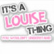 It's a Louise thing you wouldn't understand in distressed stencil font lettering in bright pink and black and Louise in pink paint strokes.