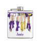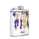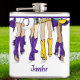 Take your tailgate game up a notch with this personalized flask featuring a bold fashion illustration of confident ladies rocking their purple and yellow school colours — complete with cowboy boots and hats that scream Southern pride!