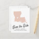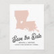 Modern LOUISIANA State Destination wedding save the date with LOUISIANA State silhouette in blush pink with with heart, save the date in a contemporary font and your name and wedding date along the bottom. On the back a space for a custom message and your return address.