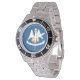 Has heft and feel of expensive stainless steel quartz watches. Good band with safety catch. I removed links, which is easy because engraved arrows show direction to push the linking pins. As always by this seller, the image (a railroad logo) is a perfect reproduction of my emailed image, and is precisely spaced and aligned.