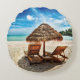 Lounge chairs on beach throw pillow