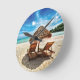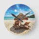 Lounge chairs on beach throw pillow round clock