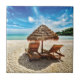 Lounge chairs on beach throw pillow tile