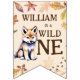 Cute wolf cub wild one woodlands fête d'anniversaire heureux bandeau de bottes drapeaux, vous pouvez personnaliser premier et dernier drapeaux avec un nom d'enfant et au milieu le numéro d'anniversaire.