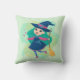 Lovable Halloween Witch with Broom and Stars Throw Pillow