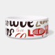 I absolutely love this product! I was a little concerned prior to buying it, but I was blown away by the quality of the item. The bowl is sturdy and arrived clean without any damage. The printing was crisp and clean and looks Better than I hoped! My dogs immediately knew these were for them and get very excited to pose with their new bowls! Definitely recommend and will purchase more in the future! The printing is crisp and well done. It looks absolutely beautiful on the bowl, and I can tell that it’s going to hold up well over time.