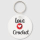 key chain for a person who loves to crochet help keep track of your keys with this key chain, large black letters and a large red heart "love 2 crochet" personalize the back.