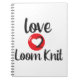 Crafter's notebook "Love 2 Loom Knit" Crafters are always making things, but sometimes they forget how the made them. This is a Great gift idea for Knitters, Crochet, Loom Knitters cross stitch, they can use this Notebook to take notes about their projects. Like what type of yarn used, size of hooks, stitches and pattern information. Whatever you need to remember about your project, all inside one notebook, makes it easy to make another item without all the guess work. Great place to put project shopping list.