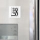 Simple black and white magnet that has "Love 8" or rather "Love Infinity" in a box on it.