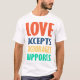 Spread the powerful message of love, acceptance, and support with this bold typography t-shirt! Featuring the uplifting words 'LOVE accepts encourages supports' in vibrant, eye-catching colours, this design is a celebration of kindness, inclusivity, and self acceptance. Perfect for anyone who values positivity and empowerment, this shirt is a daily reminder that love lifts us all.