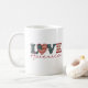 Show your patriotic spirit with this Love America mug featuring a heart detail and retro-inspired typography. Perfect for Independence Day celebrations, Memorial Day gatherings, and summer festivities.