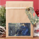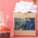 This design features a painting by the British Pre-Raphaelite artist Sir Edward Burne-Jones (1833–1898). It depicts a man and a woman amid ruined architecture from the Medieval period. The man and the woman appear to be lovers, as they are holding each other tightly, and they are seated together on a stone capital amid the ruins of buildings. A broken column is at their feet, which is covered with briar rose. In the background is a door, which has a frieze of cherubs, and there are arches leading into the distance behind the couple. Edward Burne-Jones worked on this painting in 1874, after his four-year love affair with his model Maria Zambaco had come to a sudden end.