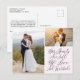 Modern, elegant photo collage wedding thank you postcard features 2 photos, calligraphy script on the front. Personalize further with your message on the back. Perfect for sending your thanks to family and friends.