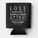 Personalized can cooler wedding favours! We show black with white lettering, but you can change to any colours. The wording "Love, Laughter & Happily Ever After," your names and wedding date on the front, these make a fun favour idea for wedding shower, rehearsal dinner, engagement party, wedding reception or anniversary party. MORE COLORS in our store.