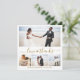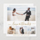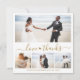 "Love and Thanks" Hand Lettered Script Heart Elegant, Minimalist Wedding Photo Collage Thank You Card in gold and white. Simple cute wedding card template featuring four (4) photo on the front and one photo on the back side. With the text "Love and thanks" in a pretty hand lettered swash tail typography script font. Add your name and thank you message.