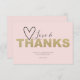 Say thank you to friends and family with this simple minimalist heart themed thank you card. The design features the words Love and Thanks in a trendy hand lettered script typography in a bold modern faux gold font over a pale pink background. The card reverses to a stylish pale pink colour. To see the matching stationery suite visit www.zazzle.com/dotellabelle.