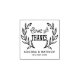 Customizable rubber stamp featuring rustic typography with foliage wreath. This rustic stamp will be perfect for wedding and other occasions. Personalize by adding your own details.