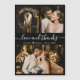 Elegant, Minimalist Black and White Hand Lettered Wedding Photo Thank You magnets. Stylish wedding thank you card template featuring three photo. With the text "Love and thanks" in a swirly hand lettered typography script font in white colour on black background. Heart shape between the names. Easy to personalize the custom name and date. If You need help or matching item, please contact to designer!