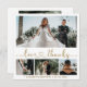 Elegant, Modern Wedding 4 Photo Collage Thank You Card in Gold and White. Stylish, minimalist wedding card template featuring four (4) grid photo collage on the front and one (1) photo on the back side. "Love and thanks" text in a hand lettered calligraphy cute heart swash tail font script. Personalize with your name and thank you message. If You need help or matching item, please contact to designer!