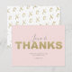 Say thank you to friends and family with this simple minimalist XO themed A2 thank you card. The design features the words Love and Thanks in a trendy hand lettered script typography with a bold modern faux gold font over a pale pink background. The card reverses to a stylish x and o pattern. To see the matching stationery suite visit www.zazzle.com/dotellabelle.