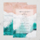 Turquoise waters, white waves and pink sand design "All we need is love and the beach" wedding invitations for your coastal or beach wedding.