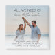 Tropical beach wedding save the date magnets which read "All you need is love and the beach". Customize it with your photo, names, wedding date and location.