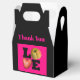 Graphic Art for vegetarian and more with heart potato + apple and large black lettering on pink background (not customizable). But you can easily add and change text (here Thank you in pink) by clicking the customize button. Design on black gable favour box. Perfect for you veggie party. Don't forget the whole collection.