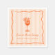 Add a pop of personality to your bridal shower bar with this custom Love at First Spritz cocktail napkin. Designed with soft peach stripes, a whimsical Aperol spritz illustration, and retro wavy borders, it’s perfect for spritz stations, signature cocktails, or summer bridal brunches. Personalize with the guest of honour’s name and event details for a chic finishing touch.