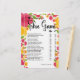 Easily customize this bridal shower game by adding the couple's names or a personalized message. The game card comes with a pre-set list of amusing and insightful questions about the couple's relationship (e.g., "Who said 'I love you' first?", "Who is messier?", "Who is more likely to fall asleep watching a movie?"). You can personalize the fonts, colours, and layout to perfectly match your shower's unique theme and colour palette. Choose from Zazzle's variety of high-quality paper types for a premium feel.