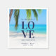 Beach destination wedding napkins that read "All we need is love and the beach". Customized with your names and wedding date.