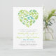 A sweet and simple invitation design that's perfect for two love birds! Shown in shades of green and aqua. Back includes room for additional text or a website address.