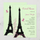 A tall, elegant and stately Eiffel Tower decorates this bridal shower invitation. The pretty shades of pink, and the fancy French script accent the romance of your Parisian themed event. This invitation is shown on the basic paper; however, I recommend the weight and texture of the linen paper. This Bridal Shower Invitation is part of the full wedding line Love Birds; however, if additional items are required just let us know.