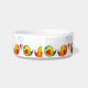 From my original drawing ink and watercolor on paper, lovely whimsical birds in blue, green, orange, yellow and red with heart shaped wings looking at a strawberry heart hanging from a cloud. A colourful design for this lovely pet bowl. Add the name of your pet and... done :)