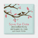 Spring or nature themed wedding magnets feature two brown bird silhouettes perched on a tree limb with peach or pink leaves on a beautiful aqua blue background. Visit our store for matching products. Heartlocked