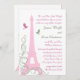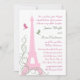 A tall, elegant and stately Eiffel Tower decorates this wedding invitation. The subtle shades of pink and the fancy French script accent the romance of your Parisian themed evening. This invitation is shown on the basic paper; however, I recommend the weight and texture of the linen paper. This invitation is part of a full wedding line; however, if additional items are required just let us know.