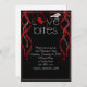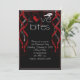 Who says Valentine's day has to be sweet and nice? Through your own un-Valentines day party! This invitation has a black background with red curled ribbon and red heart confetti. At the top it says Love Bites. The O in Love is replaced with a bitten heart and there is a white raven perched on the E. Edit the text to fit your party!