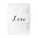 Add that extra touch to your wedding invitations with matching belly bands. This sweet and simple belly band features love printed in a fancy black script font highlighted against a crisp white background