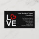 LOVE, Black and White with Red Sketched Heart Business Card