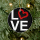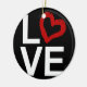 LOVE, Black and White with Red Sketched Heart Ceramic Ornament