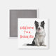 This fun canine magnet features a portrait of a happy black and white border collie with Gotta Love me I'm a Border Collie printed in a red font highlighted against a crisp white background.