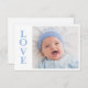 Sweet photo card with L-O-V-E typography. Add your own photo and birth stats on the back. So cute!