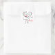 These sweet love stickers features a cartoon image of a dapper groom with a red bow tie carrying his beautiful bride with love printed in a red script font highlighted against a white background.