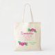 These bags were super cute (I purchased 3). The material is more of a canvas look & feel. The colour of the bag is slightly off white, but the letters look exactly as pictured. I took 3 photos in different lighting. Would recommend! I liked how there was an option to choose the font and colour of the name. The words are legible and the colours are exactly as pictured.
