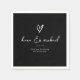 Elegant handwritten script text and brush stroke accents are used to create the pieces of this beautiful, modern wedding suite. The wedding paper napkin shown here in white on black, features a template to easily add a personal thank you message, your names and wedding date. A hand drawn heart-shape adds an additional fun accent. Search ID940 to see all the products in this wedding set.