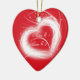 Glowing white heart with a red background and places for two names Christmas love heart ornament