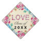 This girly graduation cap topper shows your love. The design features a floral border with pink, blue and peach flowers. The text read "LOVE" in pink and blue flowers with text that has "Class of 20XX." Customize with the class year of your choice.