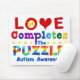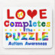 Inspirational Autism quote, Love Completes The Puzzle, with colorful Autism puzzle pieces and a beautiful butterfly to support Autistic children and their families.