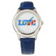 Enjoy the Love Congo 1996 Theme Watch from Nzadi Store. Proud this design with letters that together form "LOVE" ("LOVE") inlaid with the colors of the Congolese flag of the Democratic Republic of Congo. A yellow star, yellow and red lines cross the letters. This design can symbolize pride, recognition and love for the homeland. It can also be a collection, decoration or souvenir object, a gift. It can be of sentimental, historical or cultural value.